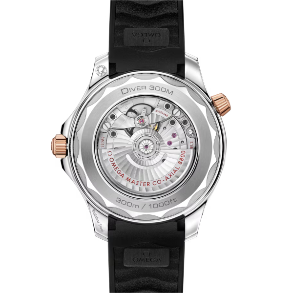 Sinds 1993 heeft de Seamaster Professional Diver 300M een legendarische reputatie. De moderne collectie van vandaag de dag wordt gekenmerkt door het beroemde oceaanerfgoed. Dit model beschikt over een horlogekast van 42 mm die gemaakt is van edelstaal in combinatie met 18K Sedna™ en heeft een zwarte keramische bezel met een Ceragold™ duikschaal. De wijzerplaat is eveneens van gepolijst zwart keramiek en voorzien van lasergegraveerde golven en een datumvenster op 6 uur. Het horloge wordt aangedreven door een Omega Master Chronometer Kaliber 8800, die te bezichtigen is door de transparante achterzijde. Het model is waterdicht tot 30 ATM, wat het geschikt maakt om mee te duiken.